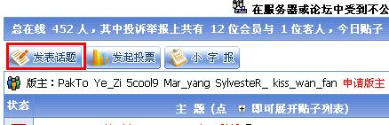 4. 打开论坛的 投诉举报  区, 点击'发表话题'