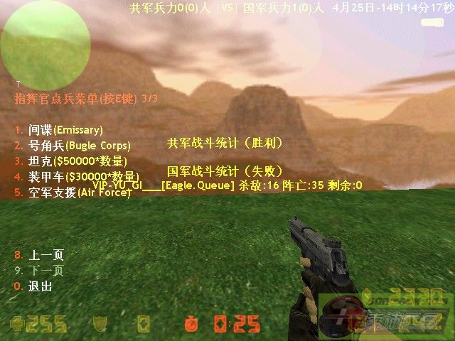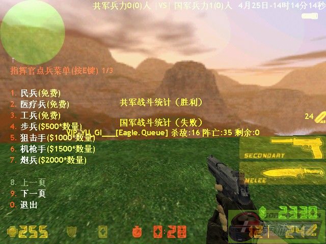 前25秒是选兵时间,按E后会出现兵种菜单,可任意选择自己喜爱的兵种
