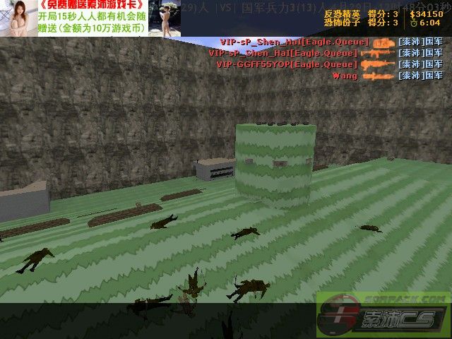 补给箱:补给箱里装有:子弹、手雷、AK47、M249、P90、T手枪、CT手枪、双枪、加20血、地雷[也就是减10HP]、2000元和任意一个兵种一名