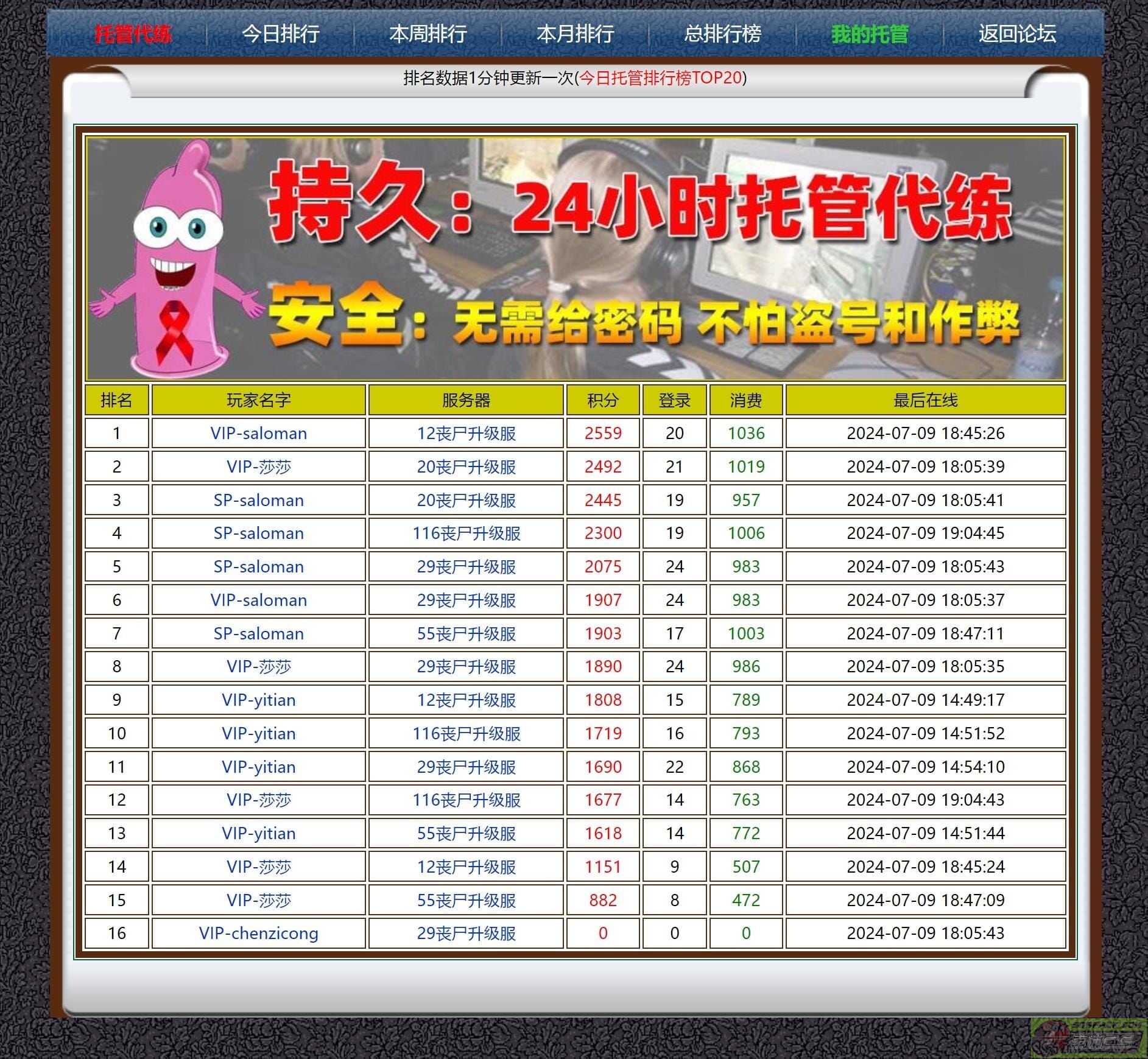 托管所获得积分,可统计入地盘争夺、争霸赛排名、每日黑板消费土豪榜、SP选举投票积分等