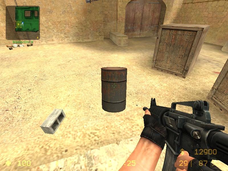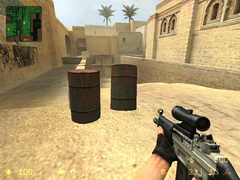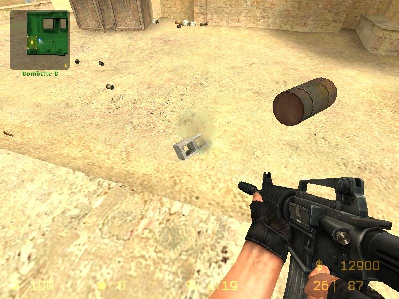 當你第一次進入遊戲,你會被遊戲場景的完美結合所震驚。在通道和角落的桶代替了原來的箱子。原先在DUST裡,擺在小通道裡的瓶子和罐子,呈現出一種沙塵暴的景像。而現在,則是一副中東式的建築和遭受戰爭洗禮的場面。DUST地圖裡的A點放C4的地方不再是以前那樣開放式的堆滿舊箱子,而一片不毛之地,裡面有一些固定的物體,可以利用它們防守,攻擊,隱藏。CS︰S將動態環境引入了第一視角射擊遊戲。我們所能說只是”感謝VAVLE”。不僅那些在SOURCE裡相互影響的道具給人留下深刻的印像,並提高了所有玩家的經驗,而且在實戰中增加了動態的場景。在遊戲裡,玩家可以將桶推到一個理想的位置,可以通過射擊理想的角度去推動或滑動這些物體。輪胎也是可以滾動的。威士忌瓶也可以被擊成碎片的。
