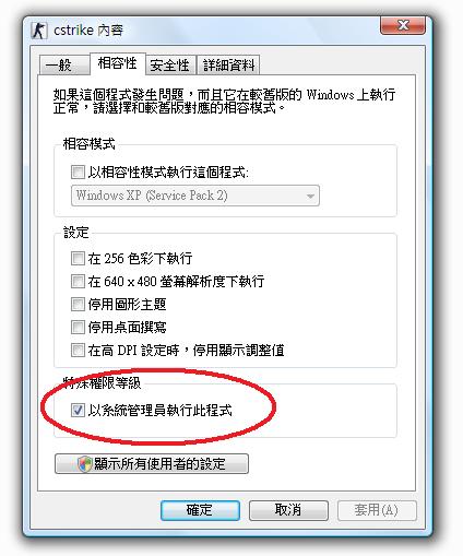在相容性頁面選「以系統管理員執行此程式」,再按確定,就可以