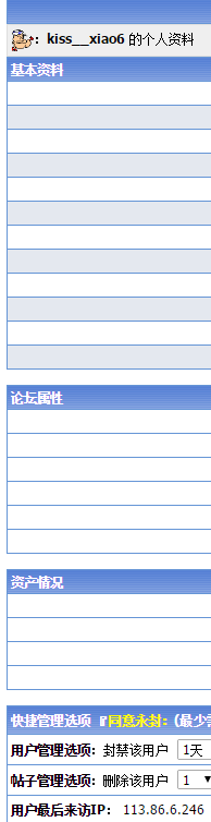 那个人骂当事人不是一次两次,刚才首页最新主题那里最少3个都是他的贴,每个主题贴回复贴我都扣了15,到最后我发现这种办法实在不行,因为他是小号,我直接禁言了一个小时,希望查IP封他大号,因为这种人让他猖狂下去,索沛会变成什么样?只是意见,采纳不采纳,你们自己决定
