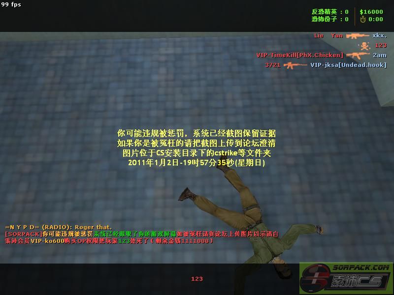 22011-1-2 19:58:00【96死亡死斗服(Aot1an.Guao)】会员VIP-ko600购买OP权限把玩家123处死了
