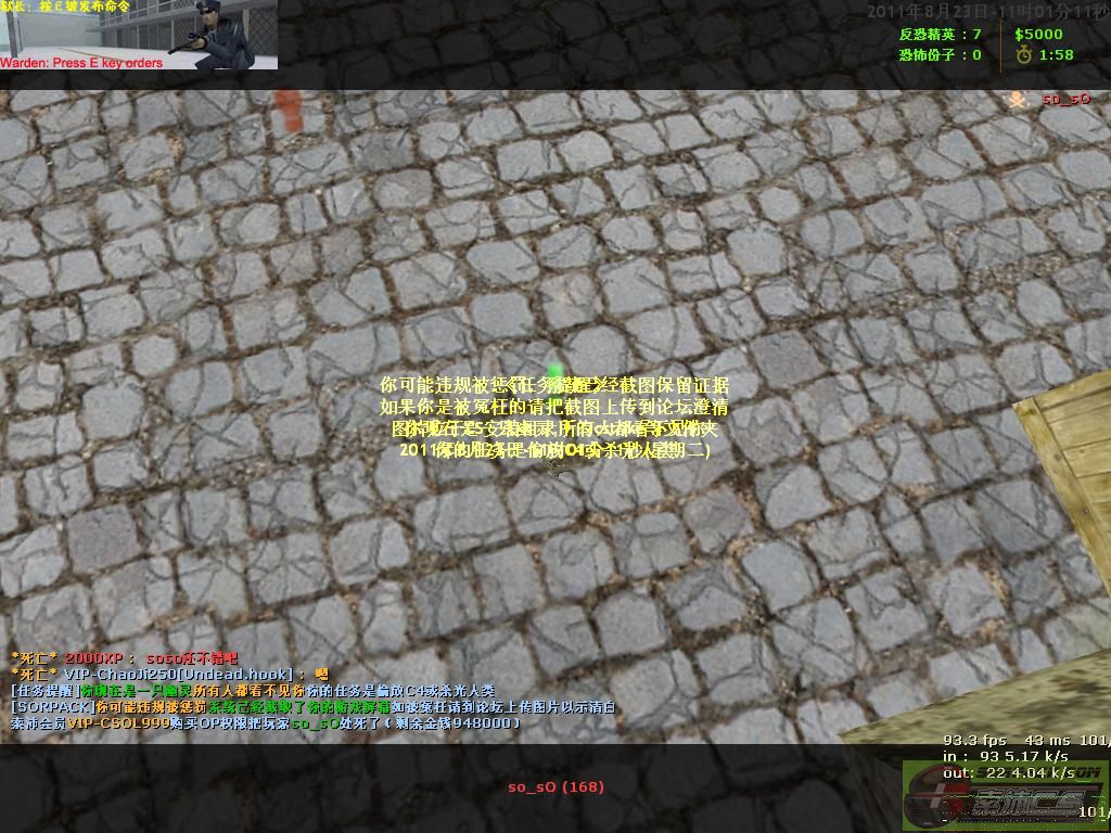 | 23 | 2011-8-23 10:53:00 | 【15幽灵暗杀服(Undead.hook)】会员VIP-CSOL999购买OP权限把玩家so_SO处死了 |