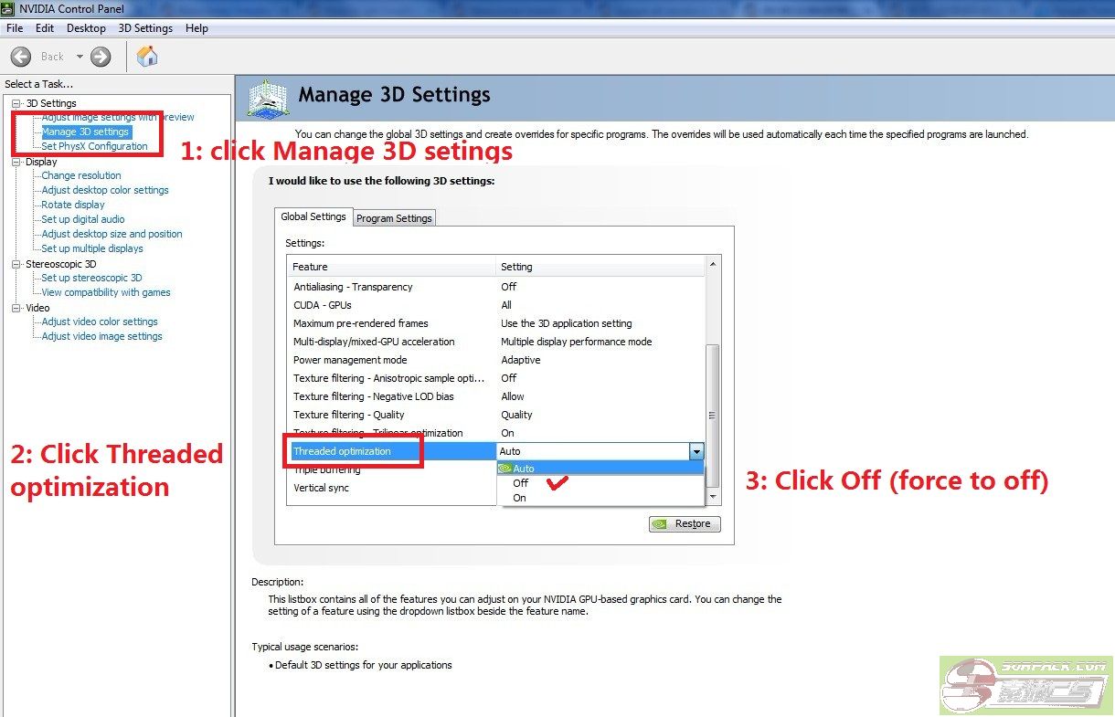 Step2: Click Manage 3D settings ------ Threaded optimization ------ Chose OFF ------- Then click on APPLY