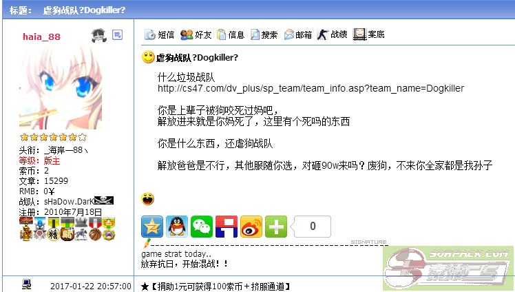 | 以文本方式查看主题 - 索沛CS1.6论坛 CS反作弊 CS1.6下载 amxx sma插件 cs对战平台 (http://www.04zz.com/index.asp) -- Dogkiller (http://www.04zz.com/list.asp?boardid=299) ---- 看看这只输不起就骂人的狗 (http://www.04zz.com/dispbbs.asp?boardid=299&id=2425482) |