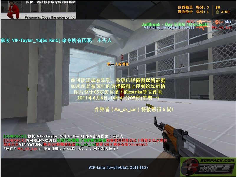 【13越狱***服(wUlaI.GuI)】会员VIP-YuTUMei购买OP权限把玩家Me_ck_Lei惩罚5局