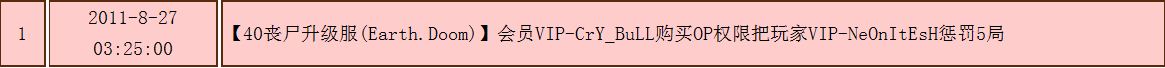 【40丧尸升级服(Earth.Doom)】会员VIP-CrY_BuLL购买OP权限把玩家VIP-NeOnItEsH惩罚5局